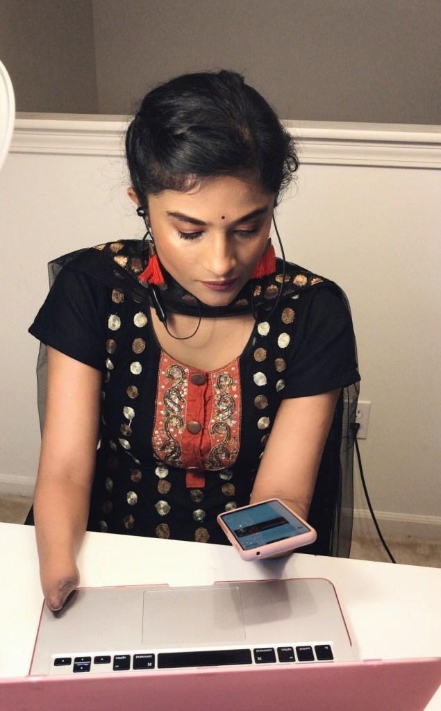 She was 13 years old when she survived a bomb blast in India. She lost both her hands and severely damaged both her legs with multiple fractures, nerve paralysis, and hypoesthesia. Despite being bed ridden for 2 years, she appeared for her exams, topped her 10th grade and scored 97% with just 3 months of preparations. She studied Economics at St. Stephen’s College, Delhi followed by a Master’s degree in Social Work at the Delhi School of Social Work. She completed her M.Phil. and Ph.D. in Social Work at the Madras School of Social Work. She is a recipient of University Grants Commission National Eligibility Test for Junior Research Fellowship and Eligibility for Lectureship.